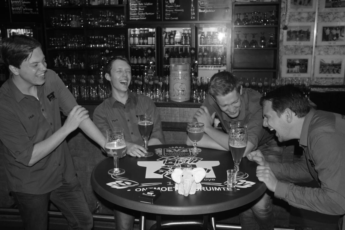 f.l.t.r., f.t.t.b.: Kasper Weusten, Leon Jacobs, Jeroen van Buijtenen, Ellen Donkers